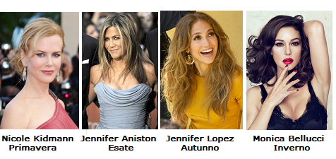 a Jennifer Lopez (Autunno) donano colori come giallo marrone e non argento e rosa ma a Catherine Zeta Jones (Inverno) donano argento e rosa e non giallo e marrone.